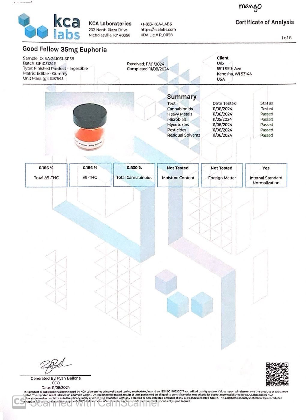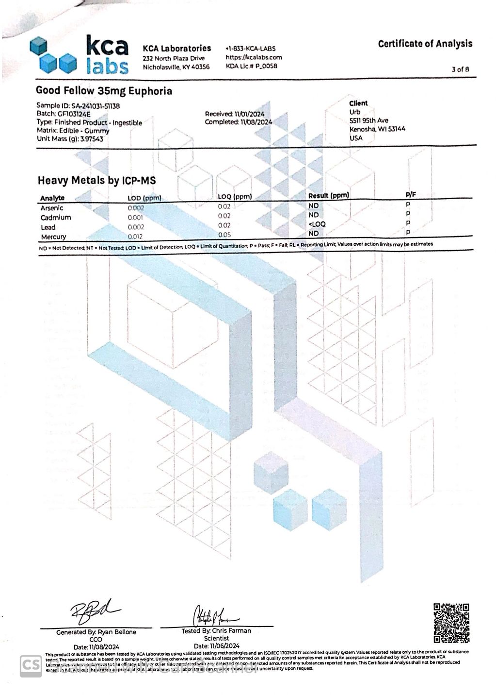 Simple Pleasures COA (Certificate of Analysis)