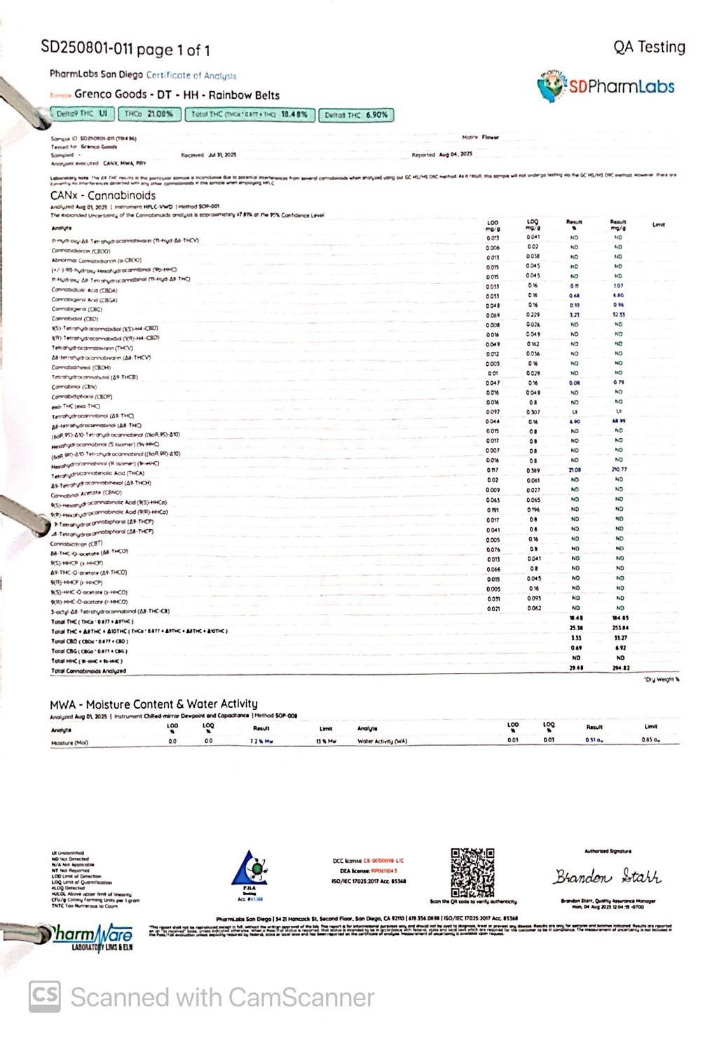 RAINBOW BELTS INDICA DIAMOND COATED HASH HOLES 5CT