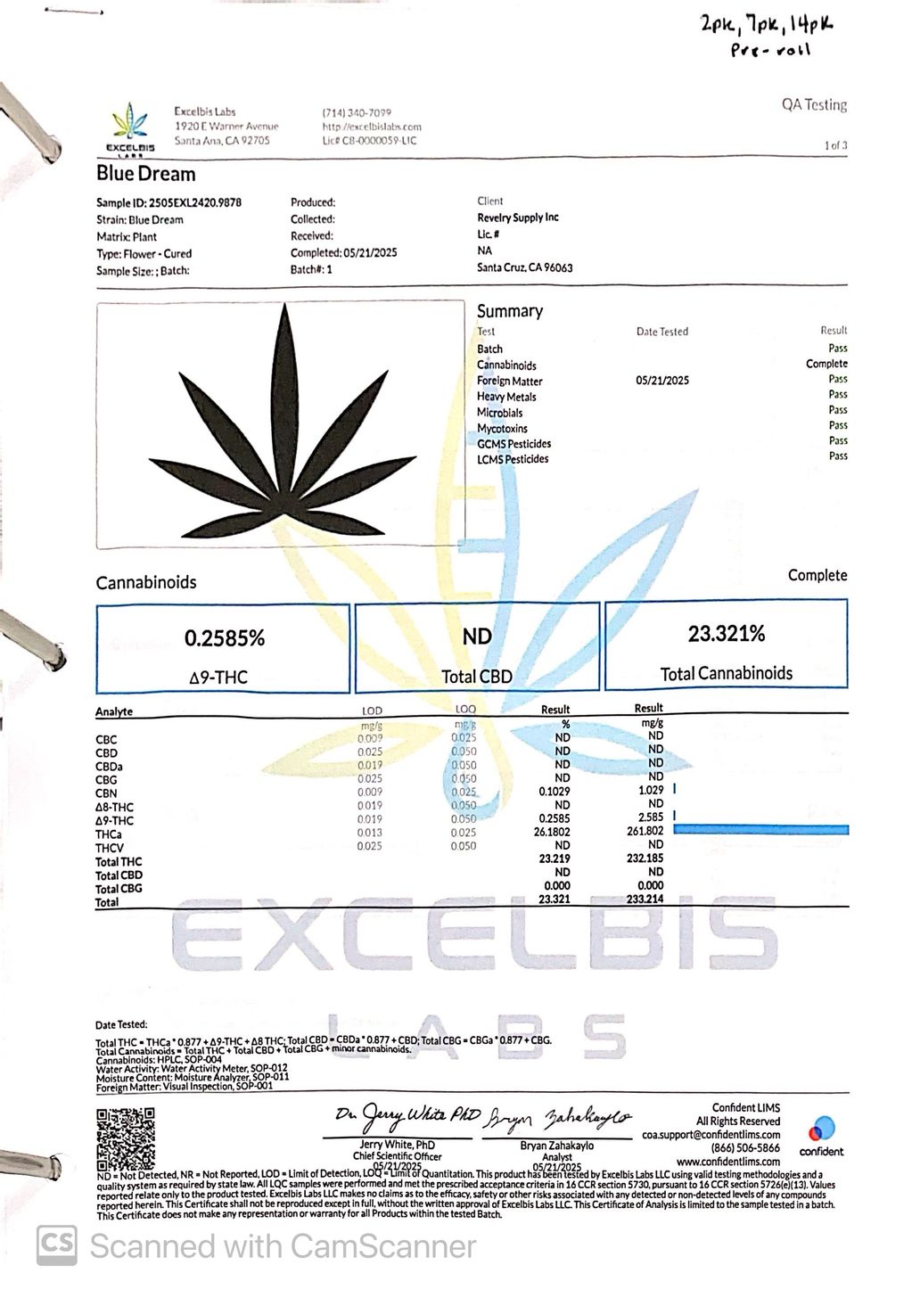 BLUE DREAM SATIVA .5G PRE ROLLS 2CT, 7CT, 14CT