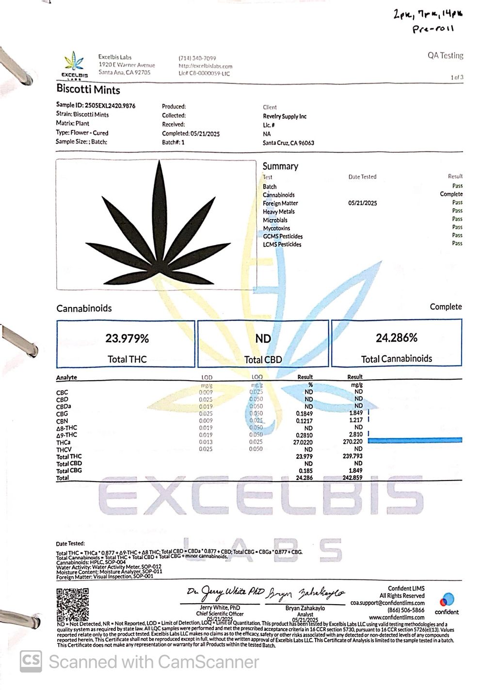 BISCOTTI MINTS INDICA .5G PRE ROLLS 2CT, 7CT, 14CT