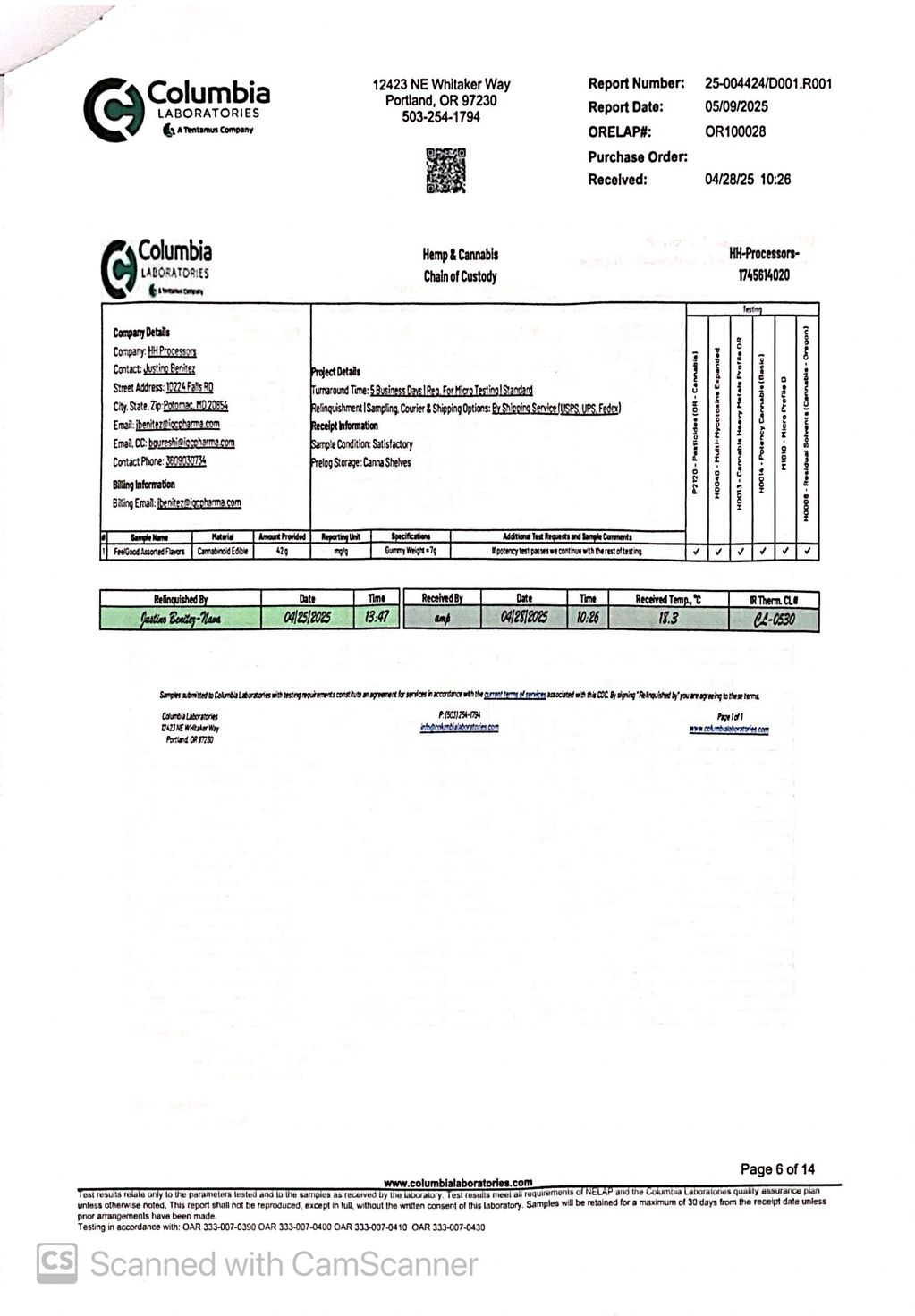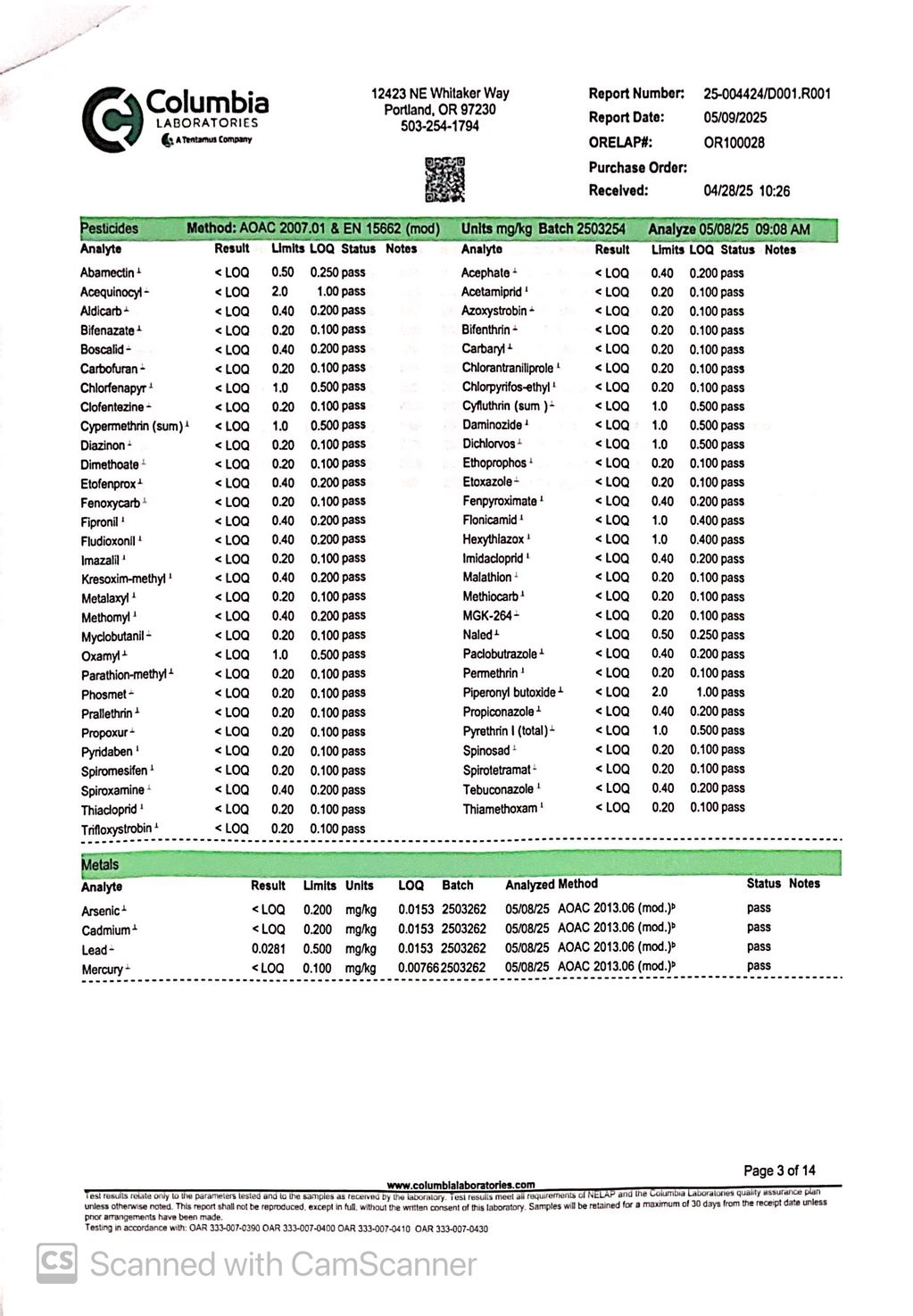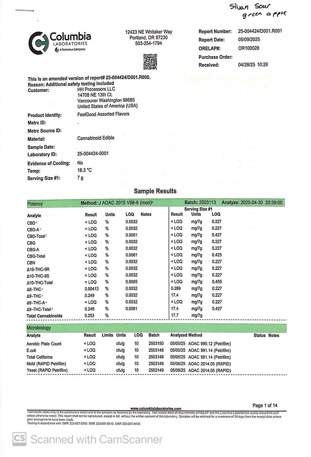 Simple Pleasures COA (Certificate of Analysis)